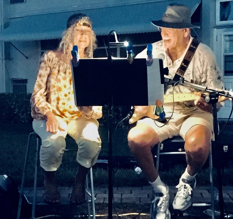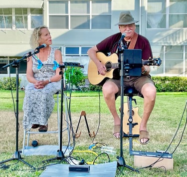 Dear Mark and Joanie I have just loved the music and the chance to safely socialize with friends. Many folks have loved your serenades beneath their windows. Others have commented that it is the major event of the weekend. Recent research has also indicated that music can stave off dementia or at least the severity of it!! So you are providing a public health service!
